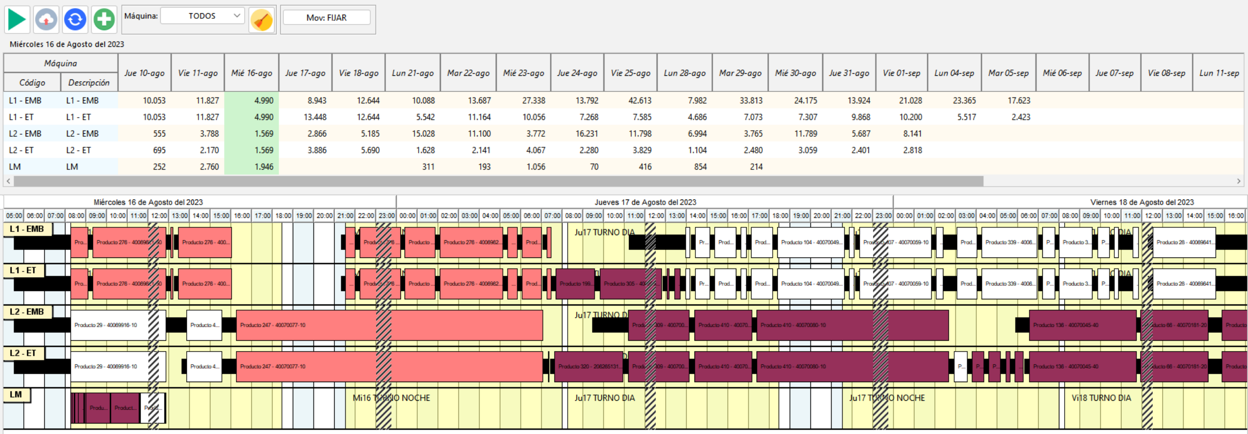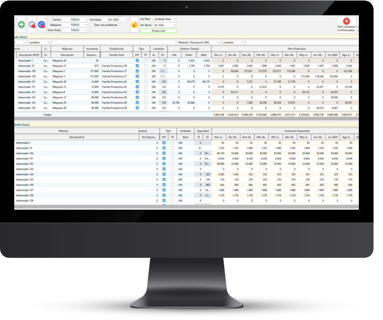 La producción se organiza de forma inteligente, minimizando cambios innecesarios y ajustando secuencias para maximizar tiempo efectivo de operación.